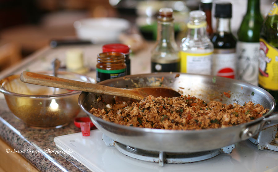 The chicken lettuce wrap is another study in contrasts. The warm chicken mixture is the perfect foil to the cool crispness of the lettuce, which is enhanced by the savory saltiness of the chicken mixture contrasting with the relative blandness of the lettuce. It makes a healthy, low carb and gluten-free appetizer – sure to please a varied crowd, and in the words of Lucy Ricardo, “it’s tasty too!” They also make a yummy after school snack if you’re feeling ambitious – or happen to have some leftovers, which is highly unlikely. I discovered this the other day when making these for this post timed out perfectly with my daughter’s arrival home from school. She was thrilled and appreciative.